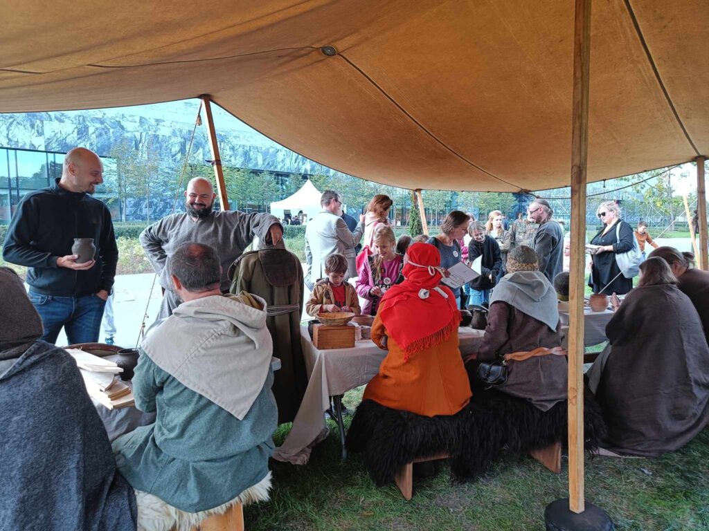 - rekonstruktorzy w strojach z epoki krzątają się przy codziennych obowiązkach – gotują, rąbią drewno, szyją, dziergają, śpiewają,